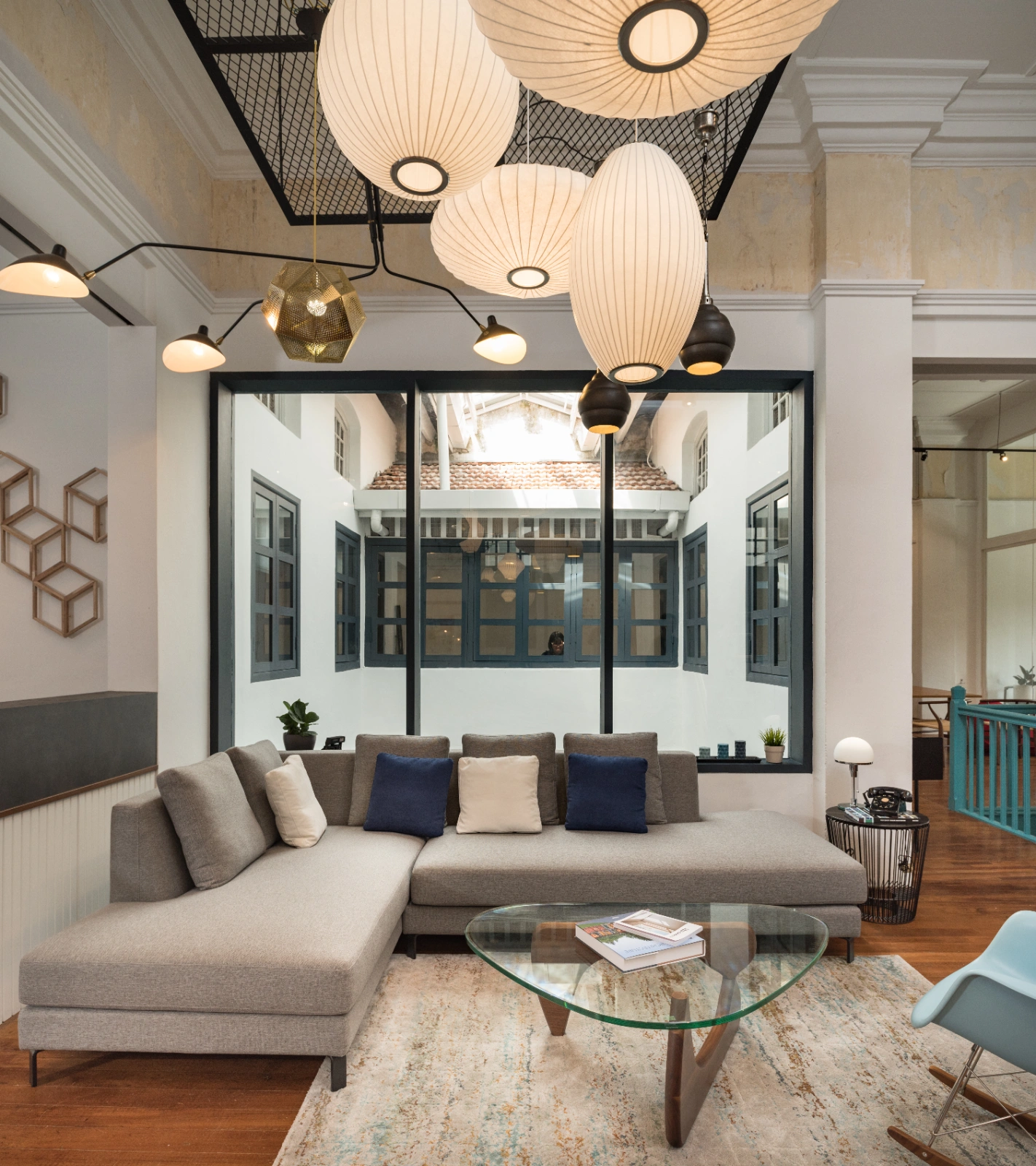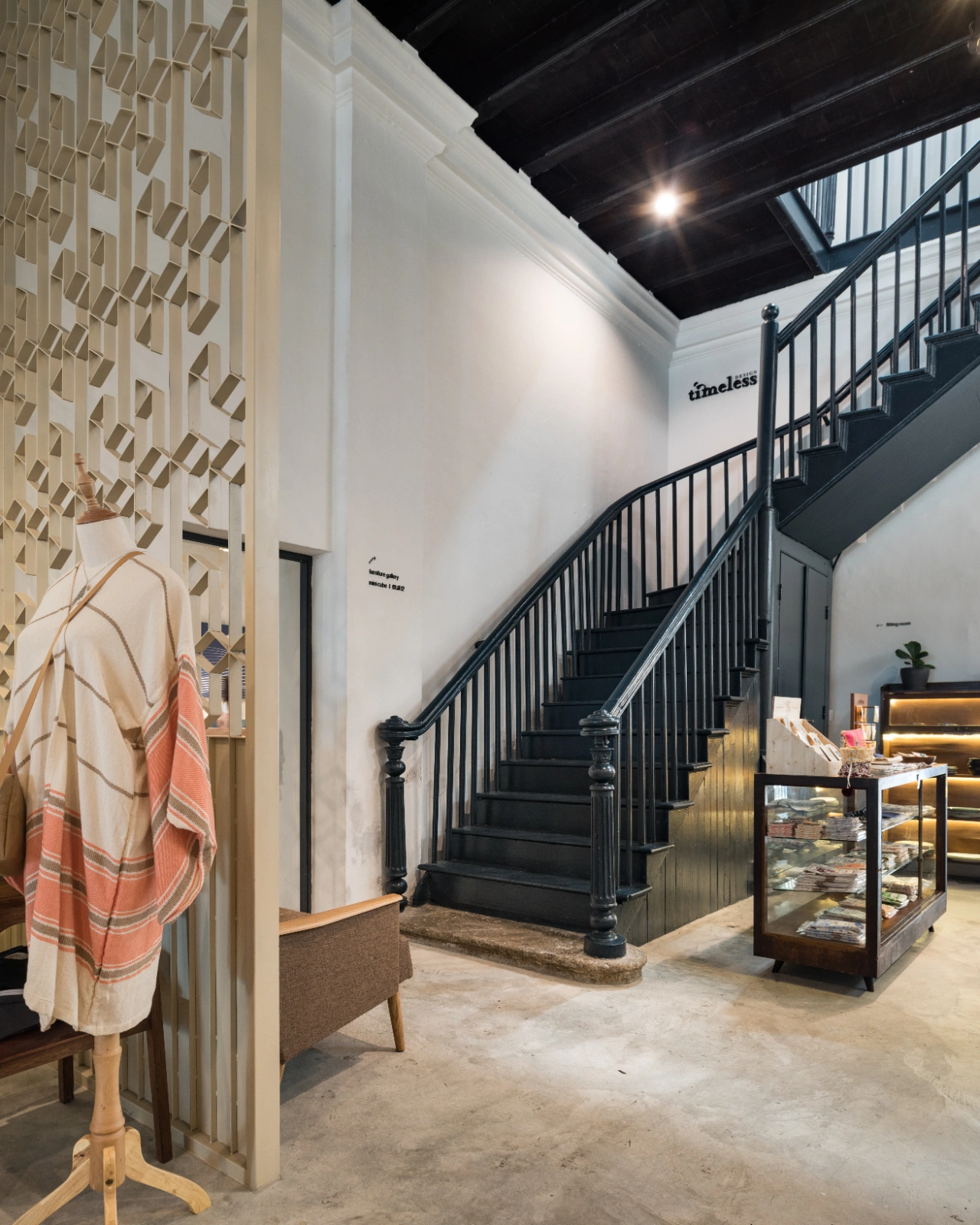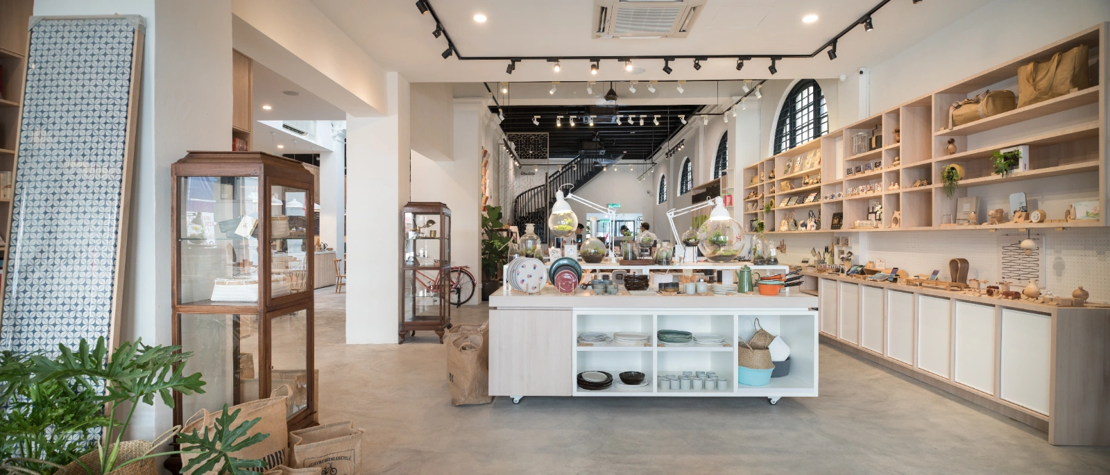 The store’s name, Mano+, meaning “hand” in Spanish, reflects its ethos of aesthetic simplicity and curated artistry. Every element—from tenants and products to furniture, food, publications, and home or garden items—is carefully showcased to highlight its intrinsic beauty. Common Penang features such as the thih hwa (wrought-iron “steel flower” gates) are reinterpreted with custom designs and subtle hidden details.