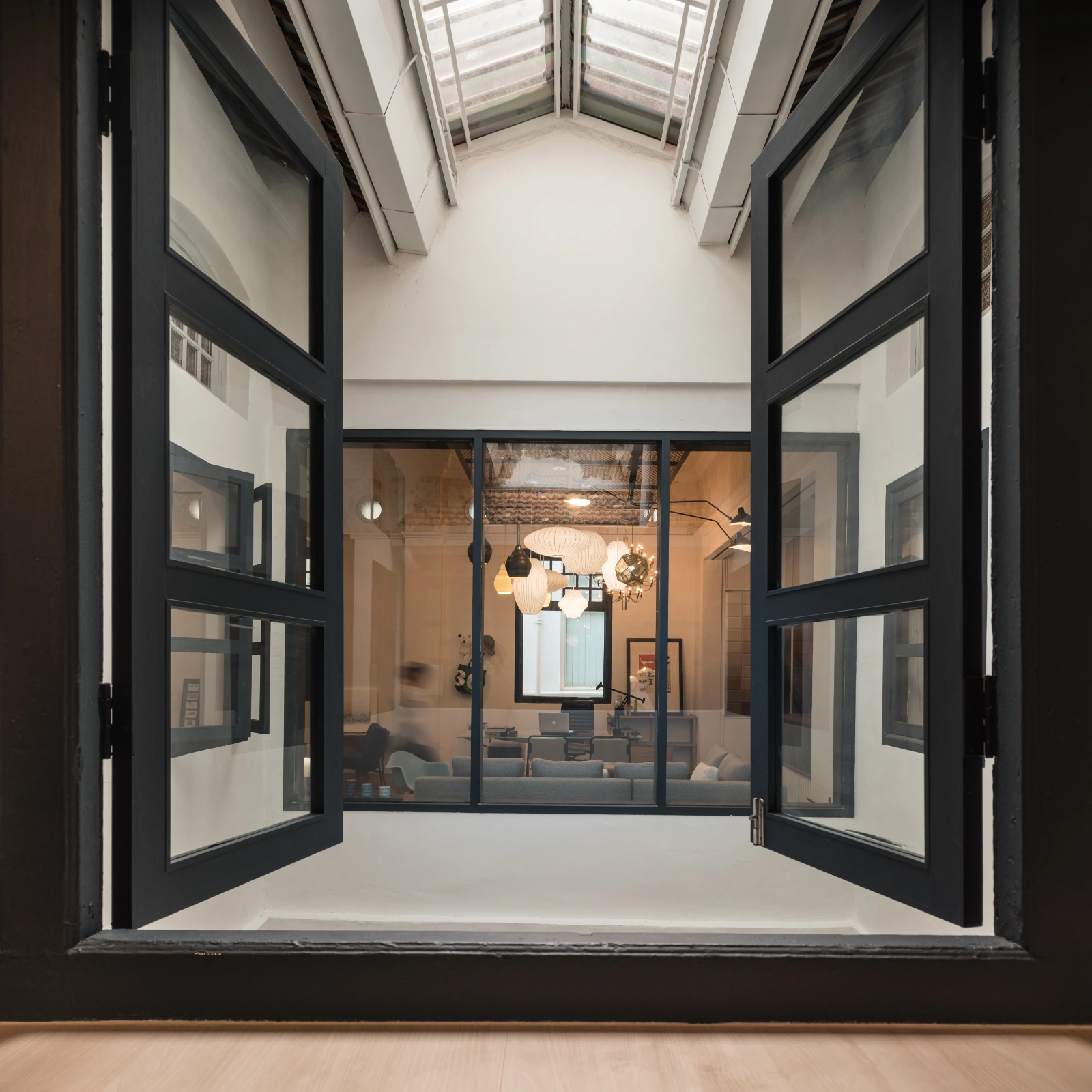 Rather than starting from a clean slate, the refurbishment focused on uncovering and celebrating the mansion’s character-defining elements. Layers of past alterations—embellishments, makeshift walls, false ceilings, and added floors—were carefully removed to reveal the building’s essence. Stripped bare and illuminated by natural light, the mansion’s original form and silhouette revealed its beauty, inspiring its preservation and showcasing as it was originally built.